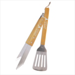 Genuine Bamboo BBQ Utensils are a great go to grilling item!  This boxed set comes with Spatula and Tongs.  Imprint on both items 0.75"TX3"W.